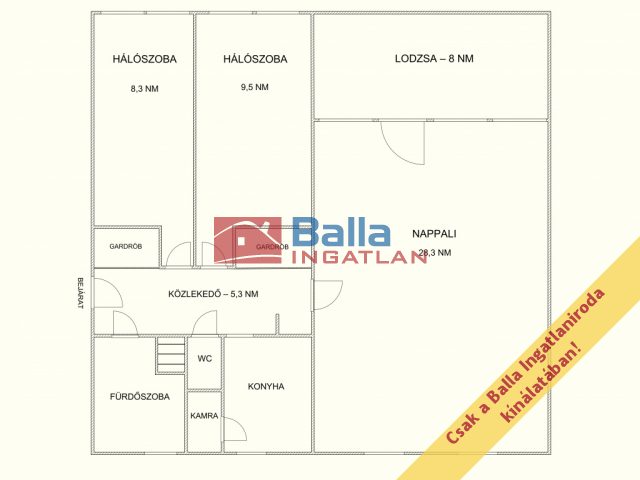 Egyéb tulajdonságok: tehermentes, azonnal költözhető, loggia (8 m²), kamra, külön wc, utcai parkolás