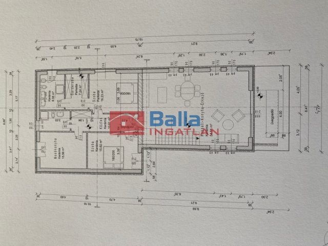 Egyéb tulajdonságok: tehermentes, erkély (21 m²), loggia, terasz (21 m²), gardróbszoba, külön étkező, külön wc, garázs, zárt autóbeálló, utcai parkolás