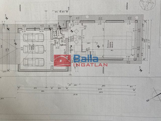 - Paved ramp of 42 m2 size with an interior garage fitting three cars,