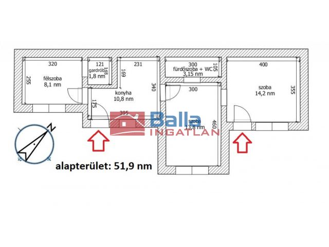 - Alapterület 52 m²