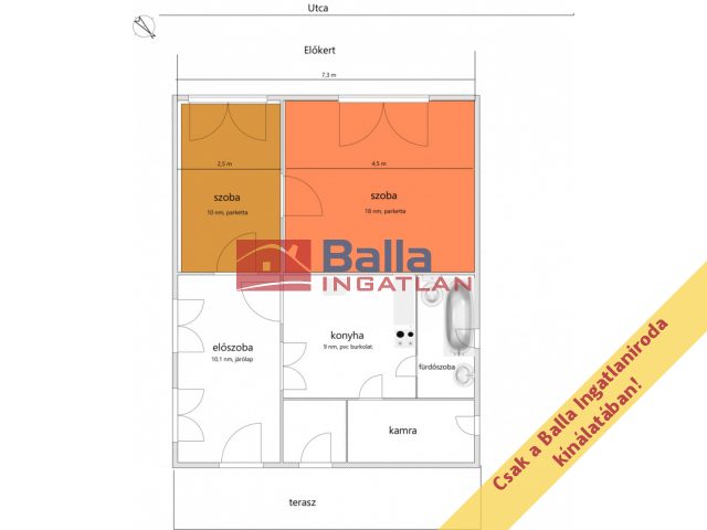 Egyéb tulajdonságok: terasz (6 m²), pince, kamra, utcai parkolás