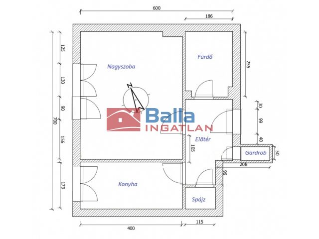 43 m² terület 1 szoba