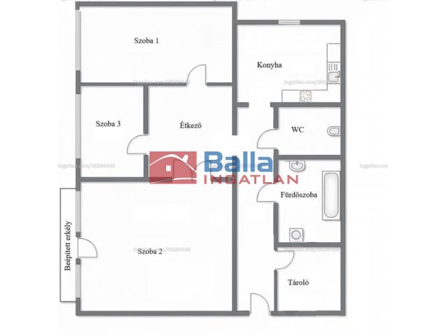 Extrák: Beépített loggia. Folyosóról leválasztott + előszoba. Tároló szoba.